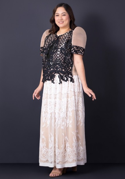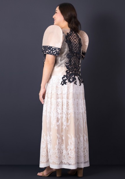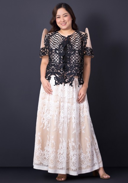 Perfect for any once-in-a-lifetime celebration, oathtakings, awarding ceremonies, for wedding sponsors, the mother of the bride or groom — this bolero masterpiece of intricate craftsmanship will elevate your formal look. Made from organza fabric and finished with meticulous detailing, an exclusive intricate cutwork design on the front, back, and sleeves. This premium bolero Filipiniana is made to be cherished, remembered, and admired! Matched with sleeveless inner top made of cotton and maxi skirt made of intricate lace closed with a zipper and hook-and-eye. Get ready to feel the magic and glam in this ensemble!