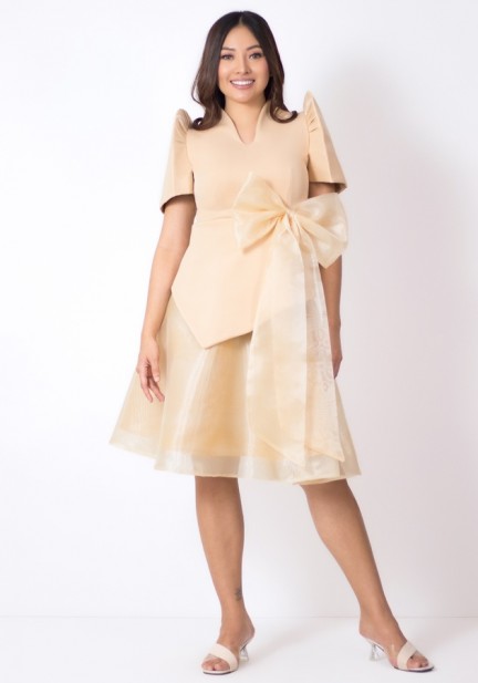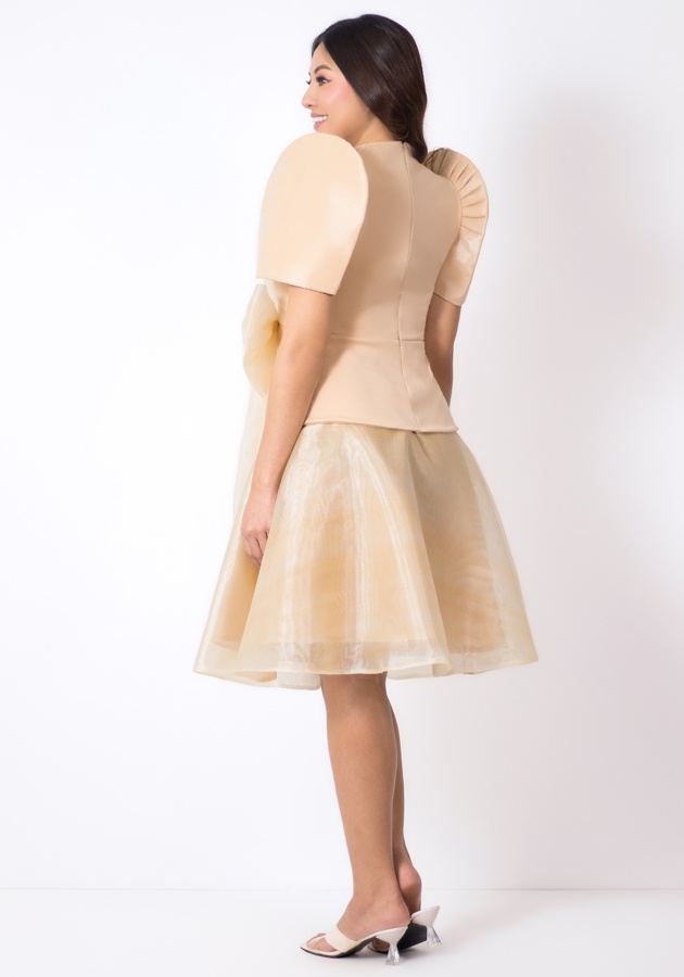 Grace, refined. This modern Filipiniana set is thoughtfully designed for life’s most meaningful moments — oathtaking ceremonies, weddings, and formal celebrations. Featuring a tailored neoprene Filipiniana top with organza bow design, zippered at the back. Set perfectly with a softly layered organza skirt, zippered side with hook and eye closure. Feels light, feminine, and undeniably elevated!
