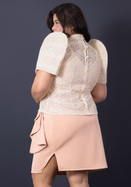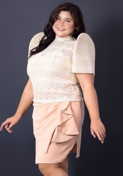 Revamp your Filipiniana style in this tandem of lace top with inner camisole partnered with our fan tulip skirt made of neoprene fabric. For your extraordinary events, Filipiniana-themed parties, recognitions, inductions, oathtakings, weddings and special happenings, let this modern style with impeccable craftsmanship take your and your admirers' hearts!
