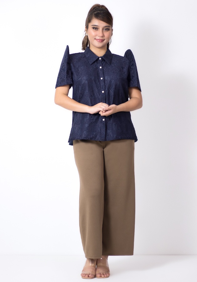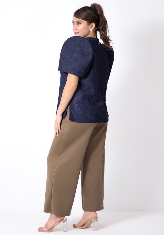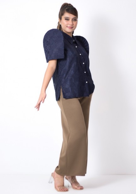 Grab a look that's refined and sophisticated with this lady barong Filipiniana and pants set. The lady barong is crafted from classy lace fabric with lining, adorned with pearl buttons. Paired with neoprene fabric pants, gartered waist with functional pockets. Together, this ensemble is just right for office meetings and regular sessions, Filipiniana-themed occasions, or cultural celebrations, offering a balance of tradition and contemporary style!