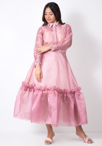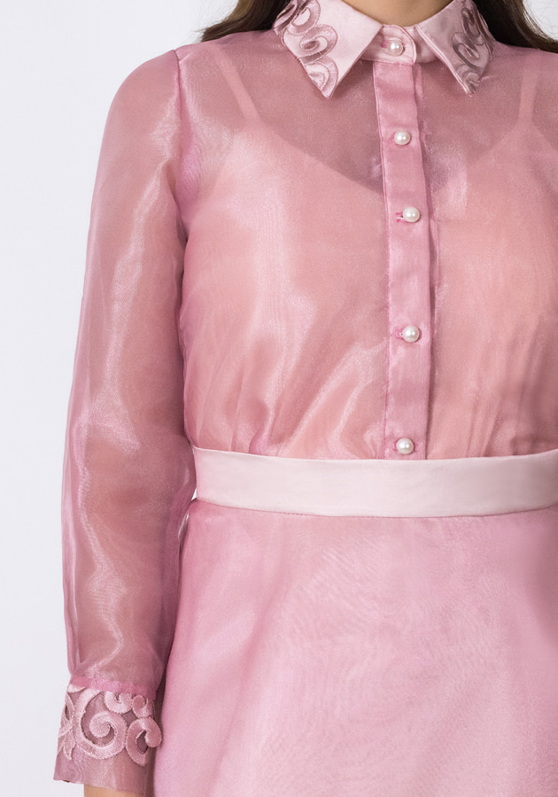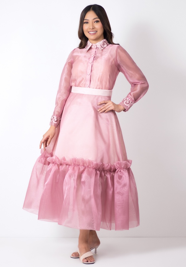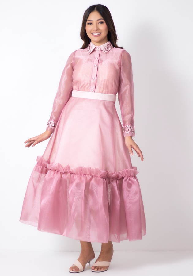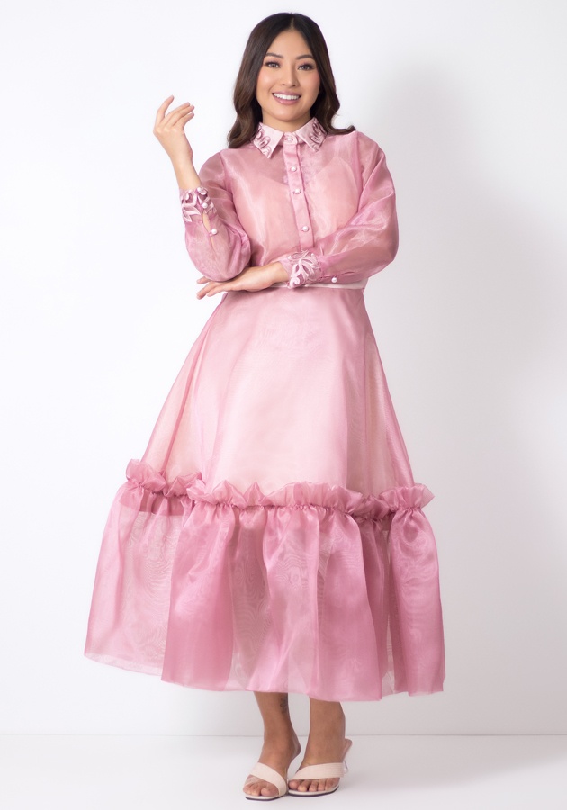 Elegance with depth, simply empowered — that's what this ensemble is exuding. Lady barong made from organza with exclusive cutwork design, paired with cotton inner camisole and shirred maxi skirt with hook and eye closure. For weddings, celebrations, oathtaking, ceremonies, Filipiniana-coded events, here's a look that commands quiet confidence and enormous amount of class!