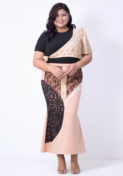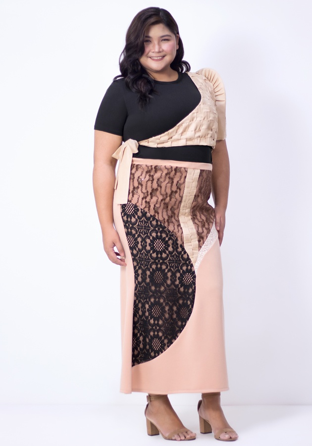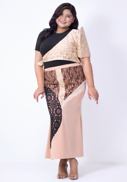 Bring the modern Filipiniana flair to life in this ensemble — one-sided weave Filipinina made of lightweight woven fabric, a comfortable cotton inner sleeved top, and a captivating flared bottom maxi skirt with flattering cutouts made of neoprene and intricate lace fabrics. Ideal for Filipino-themed weddings, cultural celebrations, elegant affairs, or any moment that calls for a refined style!