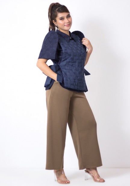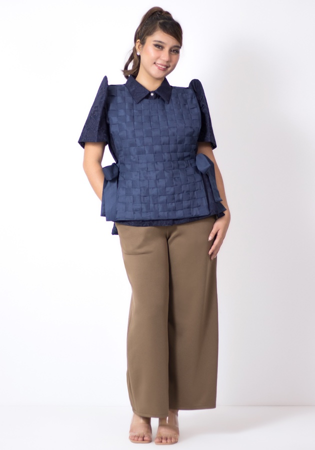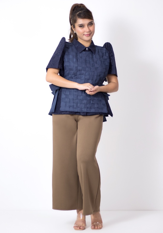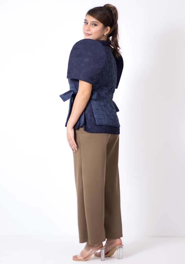 An ensemble that will elevate your Mondays and Filipiniana corporate looks, even cultural gatherings! An outer layer weave top tied at the sides made of lightweight woven fabric, an inner lady barong Filipiniana made of beautifully patterned lace, and a gartered waist pants made of neoprene. So full of artistic flair, this whole set gives you versatile, endless styling options!