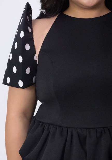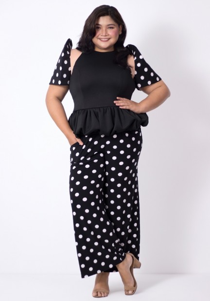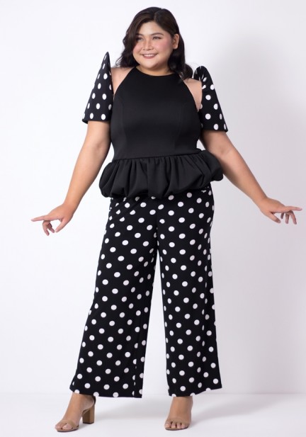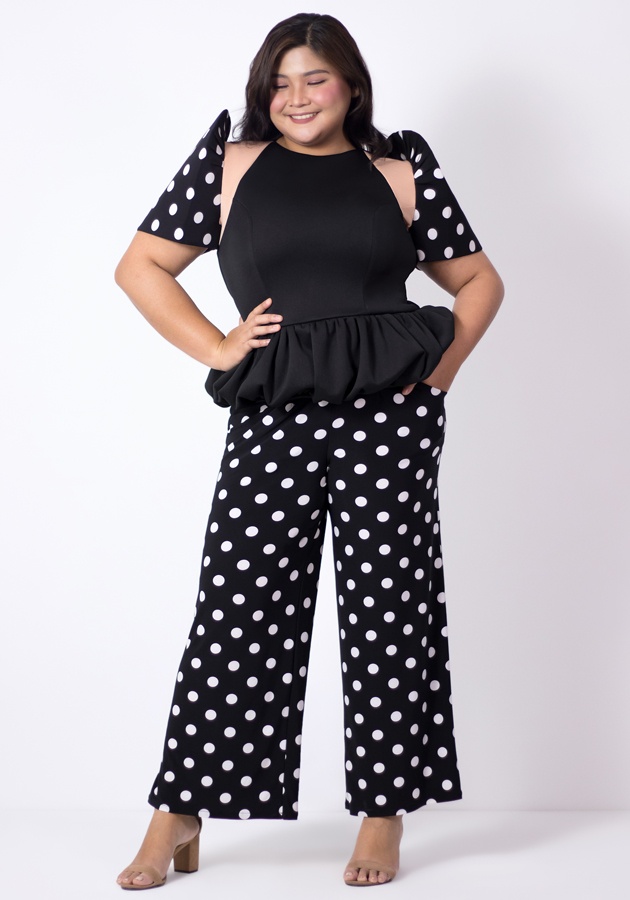 Here's a look that is a playful blend of confidence and classic charm, one that lets you radiate joy, elegance and fun. Crafted from combination of neoprene and spandex fabrics. The faux cutout shoulder design adds a flirty, fashion-forward edge, and the peplum bubble waist flatters your figure beautifully. The top flows seamlessly down to the gartered waist square pants. Own this ensemble and let a modern, fun Filipiniana look come alive!
