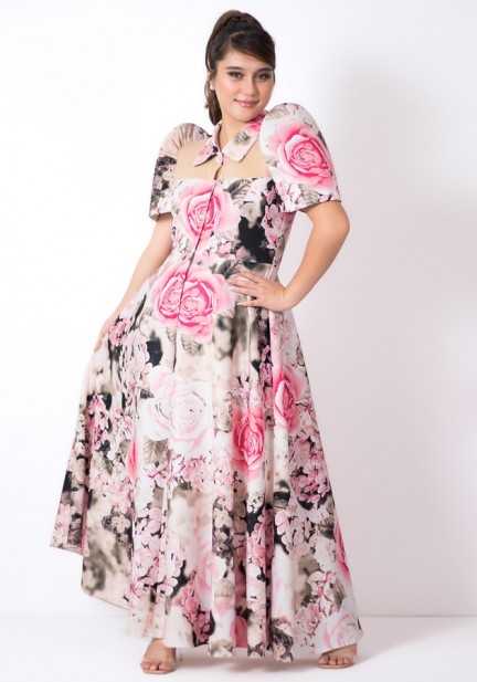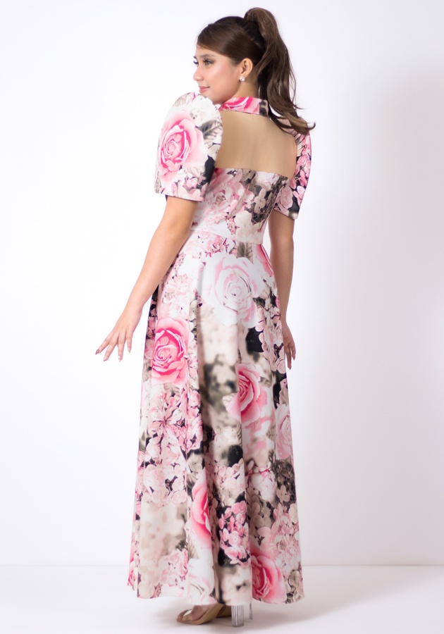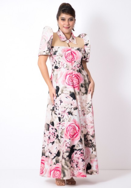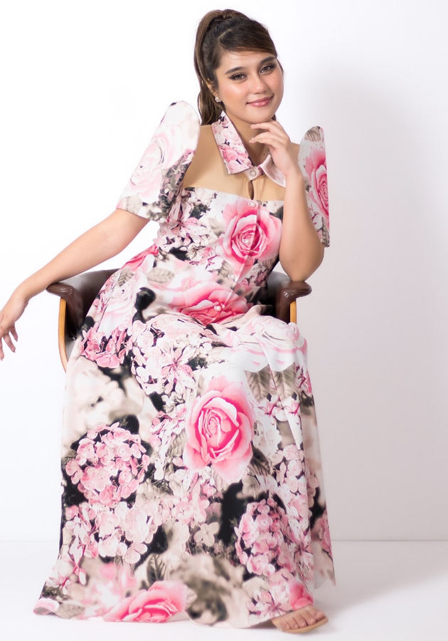 Unveil your grace and sophistication with this alluring Filipiniana maxi dress. Made of neoprene fabric, collared and buttoned front detail. Perfect for garden or floral themed weddings, formal ceremonies, and Filipiniana-coded events. This piece ensures you make an unforgettable impression and experience a memorable occasion!