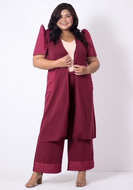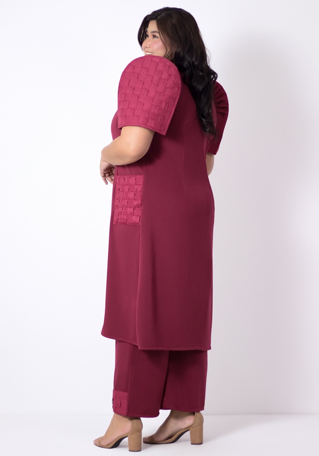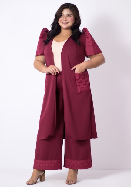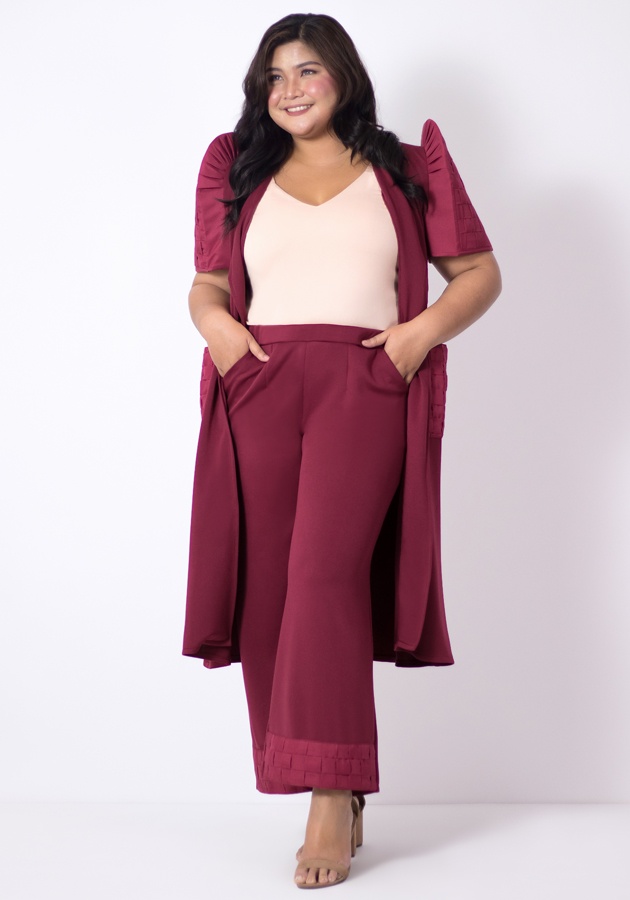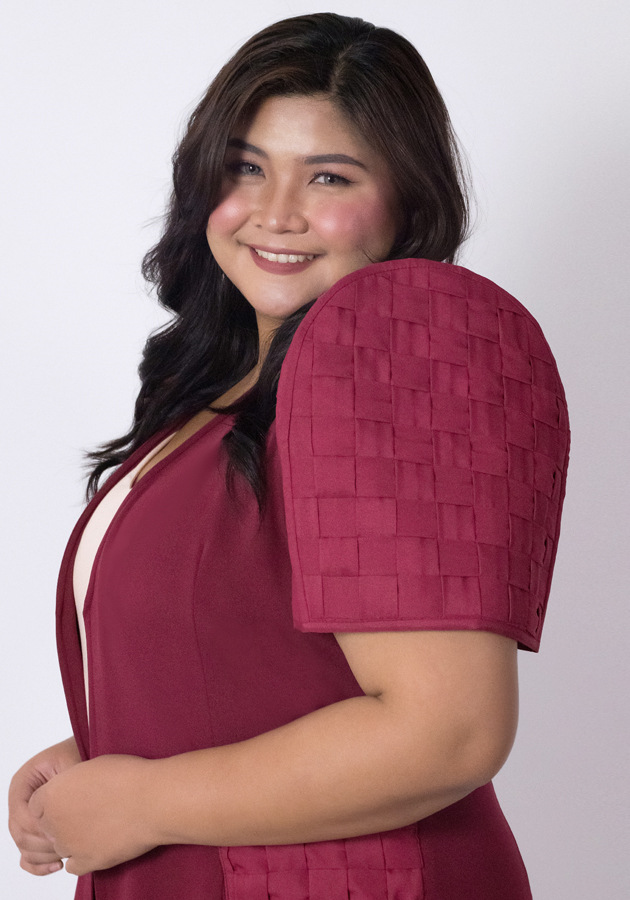 Become a picture of empowered elegance — a woman who honors her roots, embraces her beauty, and inspires others with her poise and presence as you wear this ensemble. Long Filipiniana vest and gartered waist pants made of neoprene and woven fabric accents. Inner cami top made of comfortable cotton. When you wear it, you are enabled to carry tradition with pride and elegant presence!